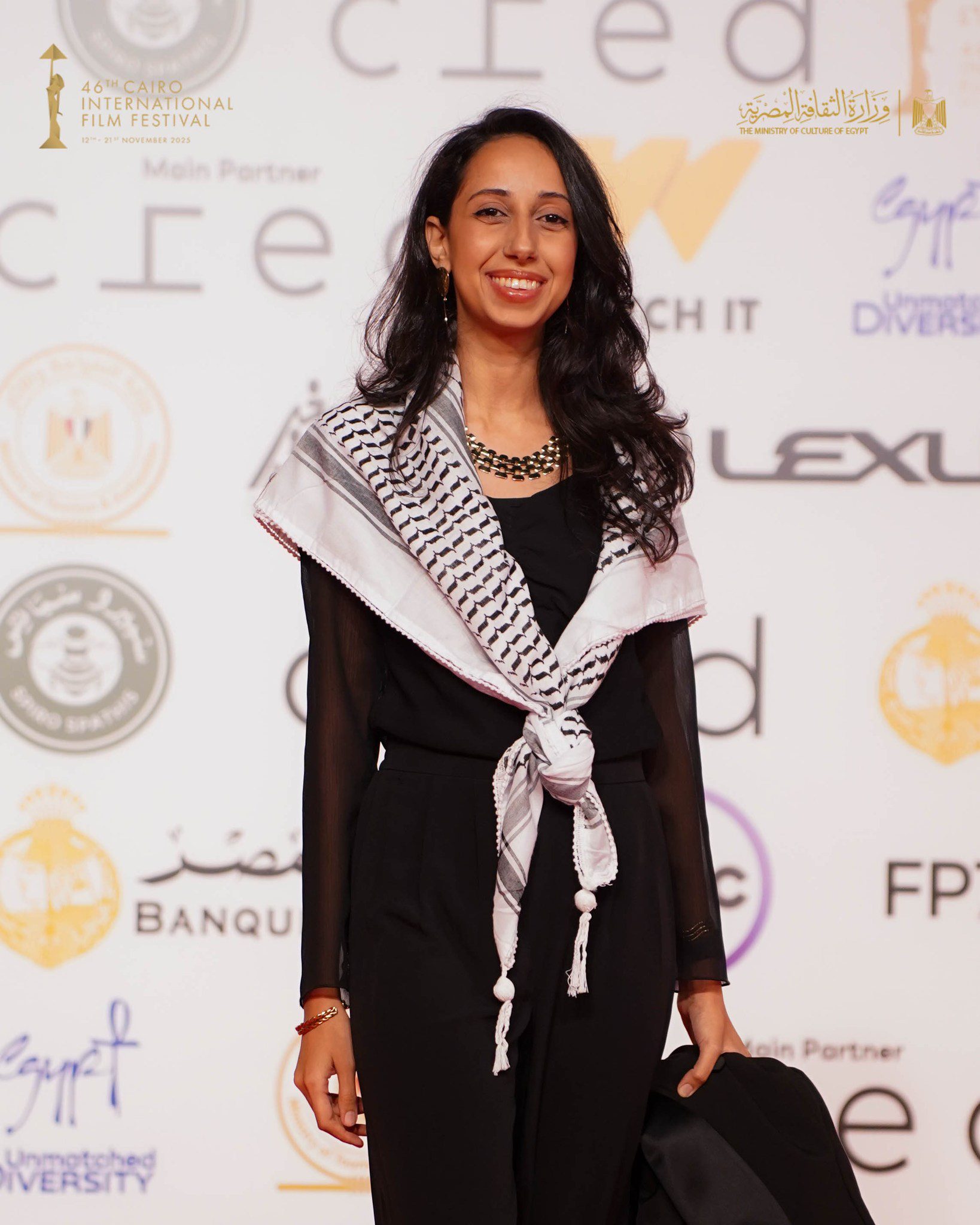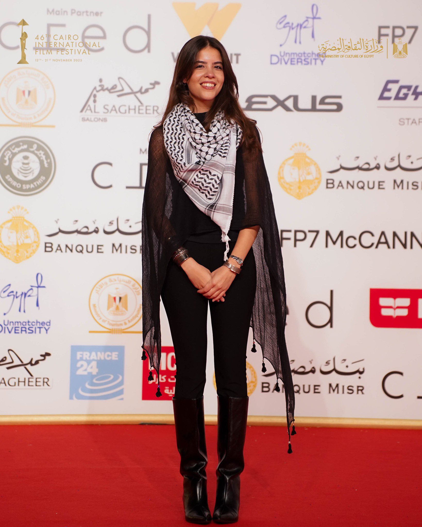 احتفل أبطال الفيلم المصرى الفلسطينى “ضايل عنا عرض” للمخرجين مى سعد وأحمد الدنف، الذى ينافس فى قسم المسابقة الدولية بمهرجان القاهرة السينمائي الدولي بدورته الـ46، بالمسرح الكبير بدار الأوبرا، بعرضه بالتقاط عدد من الصور على السجادة الحمراء، وحرصت المخرجة مى سعد بحمل صورة صديقها المخرج أحمد الدنف لعدم استطاعته الحضور وتواجده في غزة، كما حرص علي الدخول اون لاين عن طريق البث المباشر.